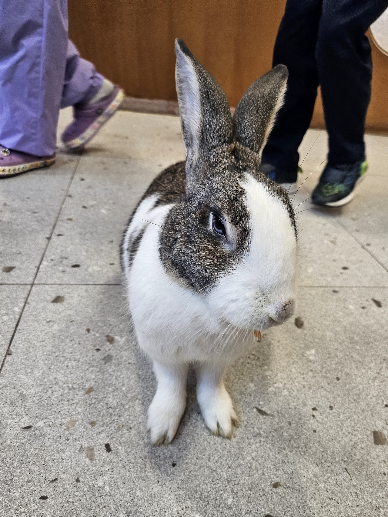 토끼가 먹이를 먹고 있는 모습이 너무 사랑스러웠답니다.
