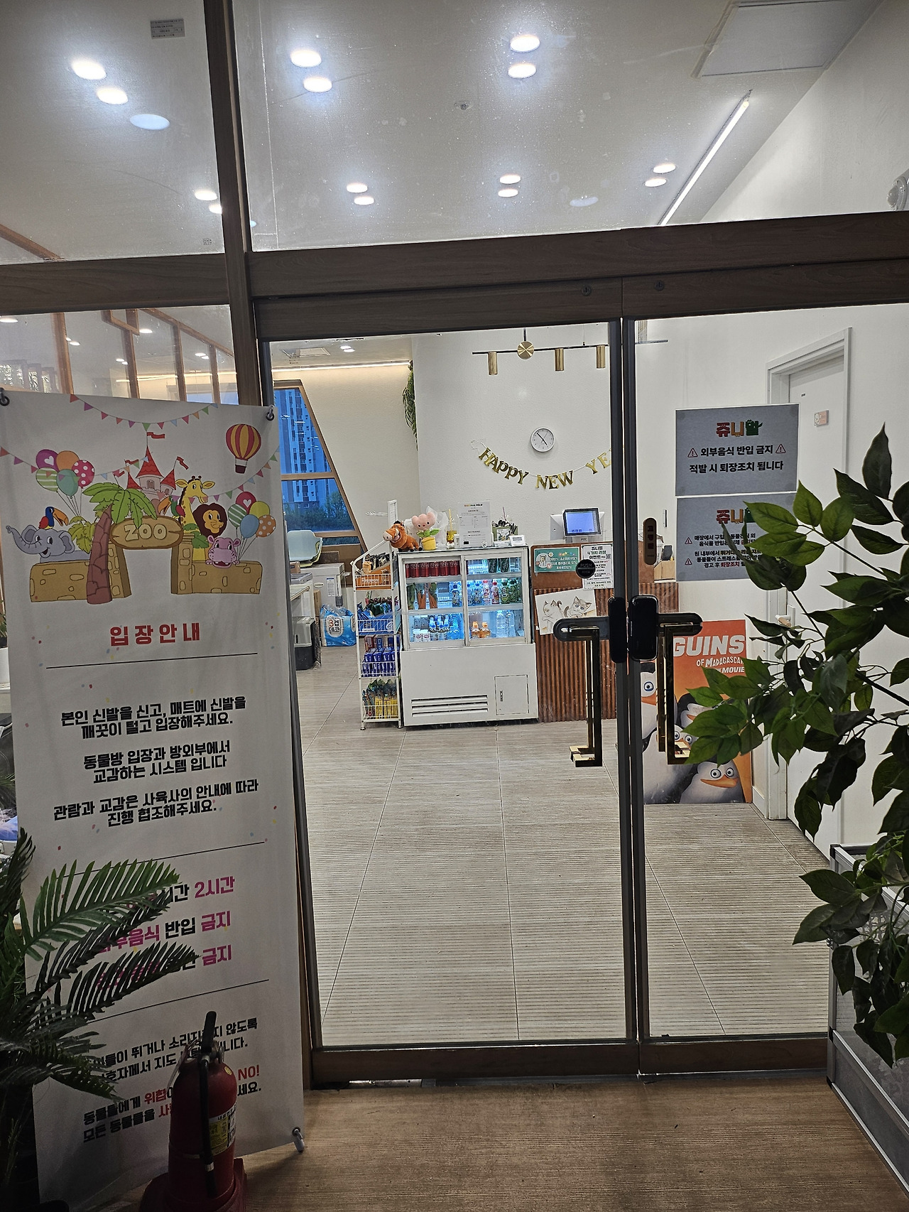 입구에는 귀여운 동물들이 그려진 배너가 걸려있어서 아이들이 더욱 신나 할 것 같았어요.