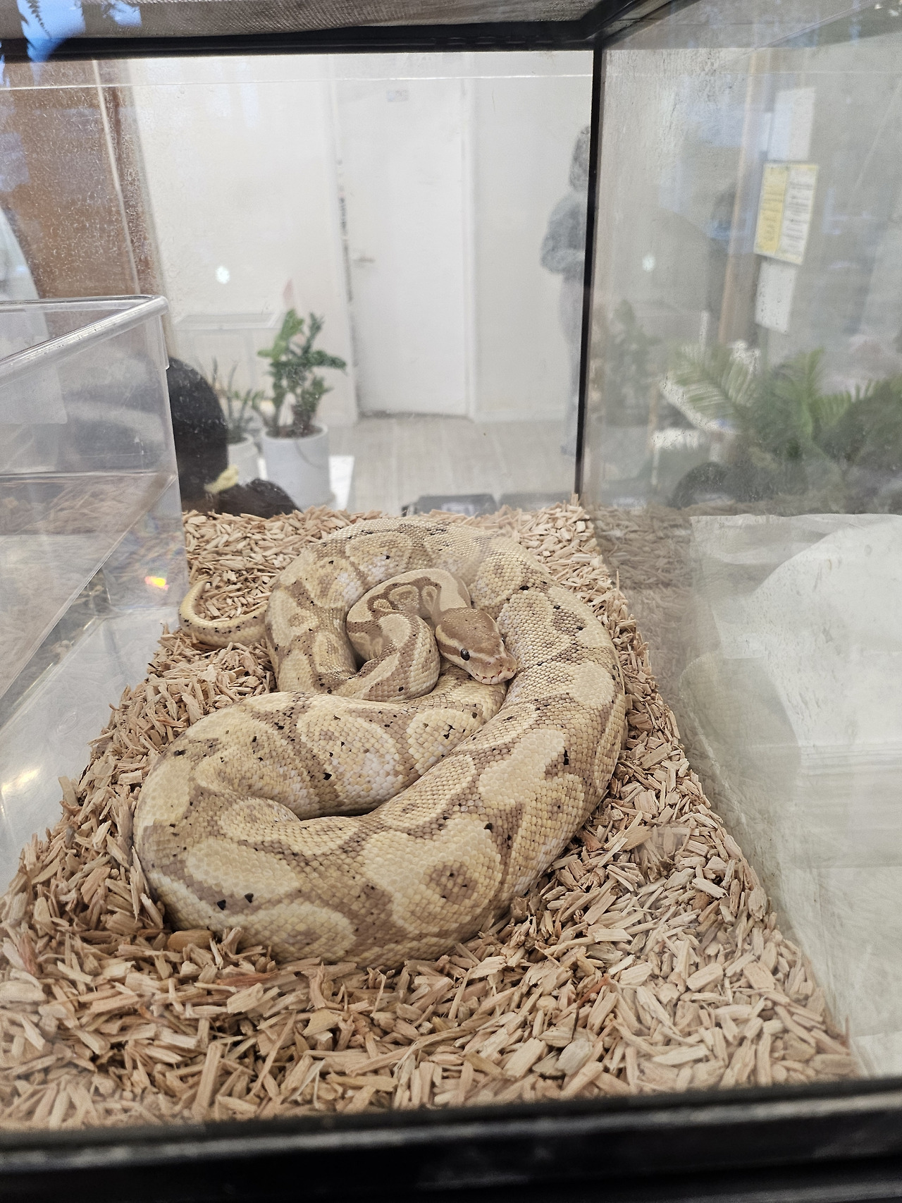 처음에는 조금 무서웠지만, 사육장 안에서 편안하게 쉬고 있는 모습이 안심이 되었어요.