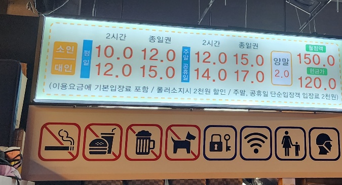 롤러장 이용 가격표인데 생각보다 비싸요.
