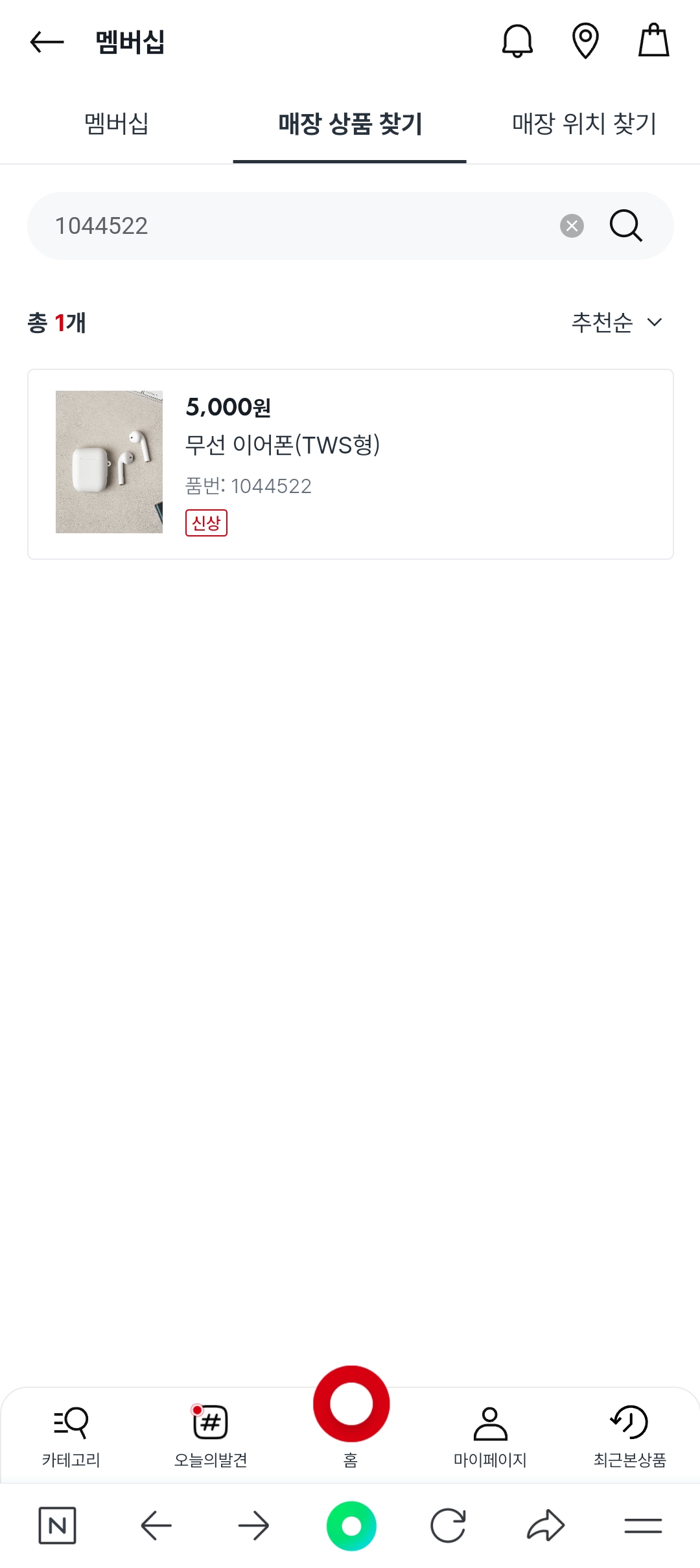 매장 상품 찾기로 가셔서 품번으로 검색하시면 돼요.