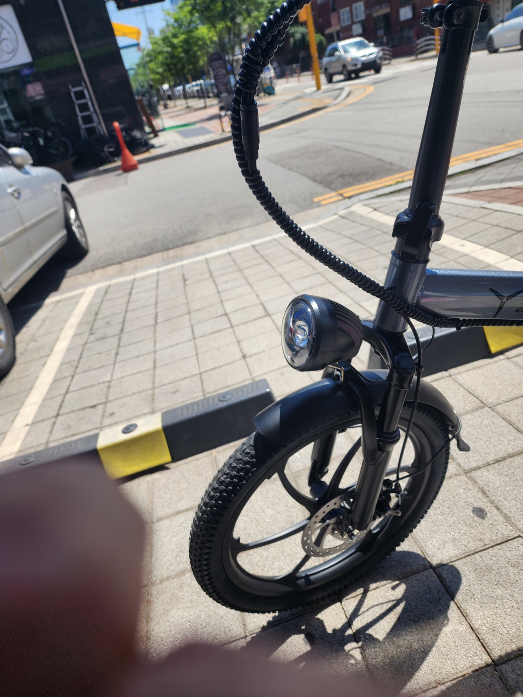 언덕길에서 페달 밟기가 힘들면 스로틀을 당겨서 올라갈 수 있습니다. 일반 저가형 전기자전거와는 달리 힘이 좋아서 웬만한 언덕은 무난히 올라갑니다.