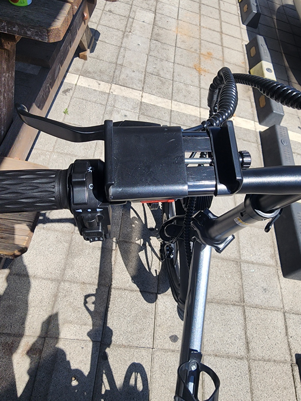 시동을 켜고 페달을 밟으면 모터가 작동하는데 3단까지 스위치가 되어있습니다. 1단은 약 8Km, 2단은 약 20Km 3단은 24Km입니다. 법규상 시속 25km를 넘으면 자전거가 아니기 때문에 리미트가 걸려 있습니다.
