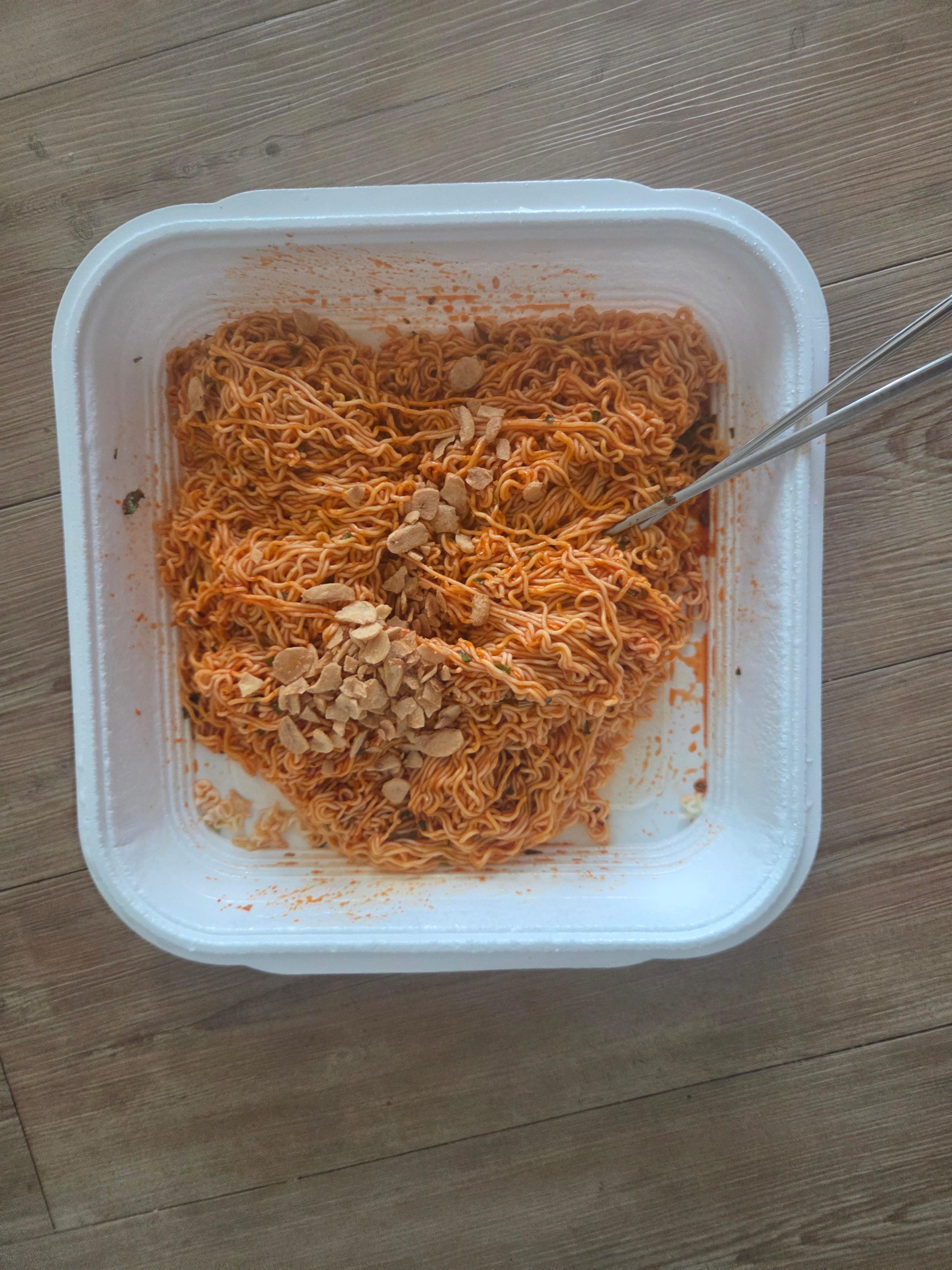 볶음면을 한 입 먹어보니, 매콤하면서도 달콤한 맛이 조화롭게 어우러졌어요.