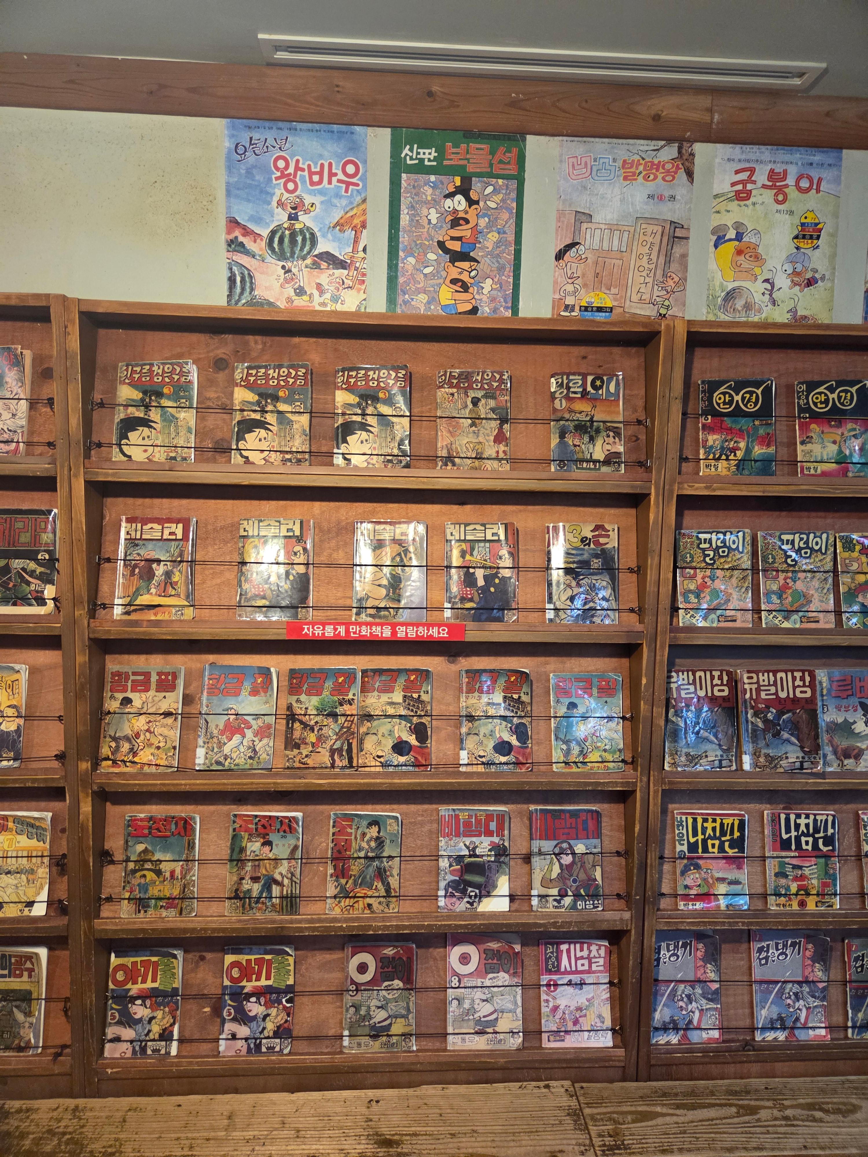 아이들이 보는 학습 만화부터 어른들을 위한 그래픽 노블, 추억의 순정만화까지... 시간만 많았다면 여기서 하루 종일 뒹굴뒹굴하고 싶더라고요. 창가 자리에 앉아 햇살 받으며 만화책 읽는 여유, 이게 바로 힐링이죠. ☕