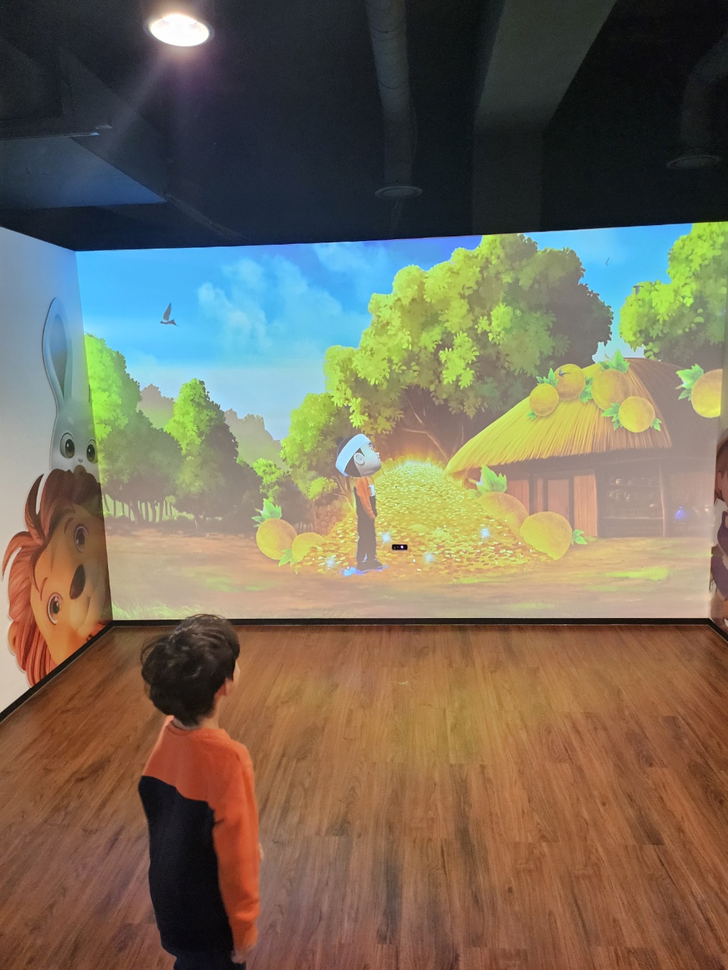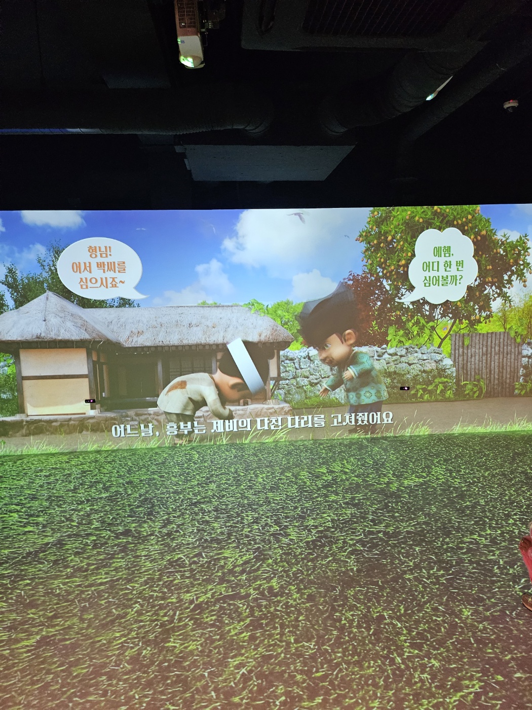 이거는 흥부놀부가 박씨를 가르는 건데 동작인식으로 좌우로 움직여서 박씨를 가르는 거예요. 시간 내에 가르면 황금이 나오고 그러지 못하면 도깨비가 나옵니다.
