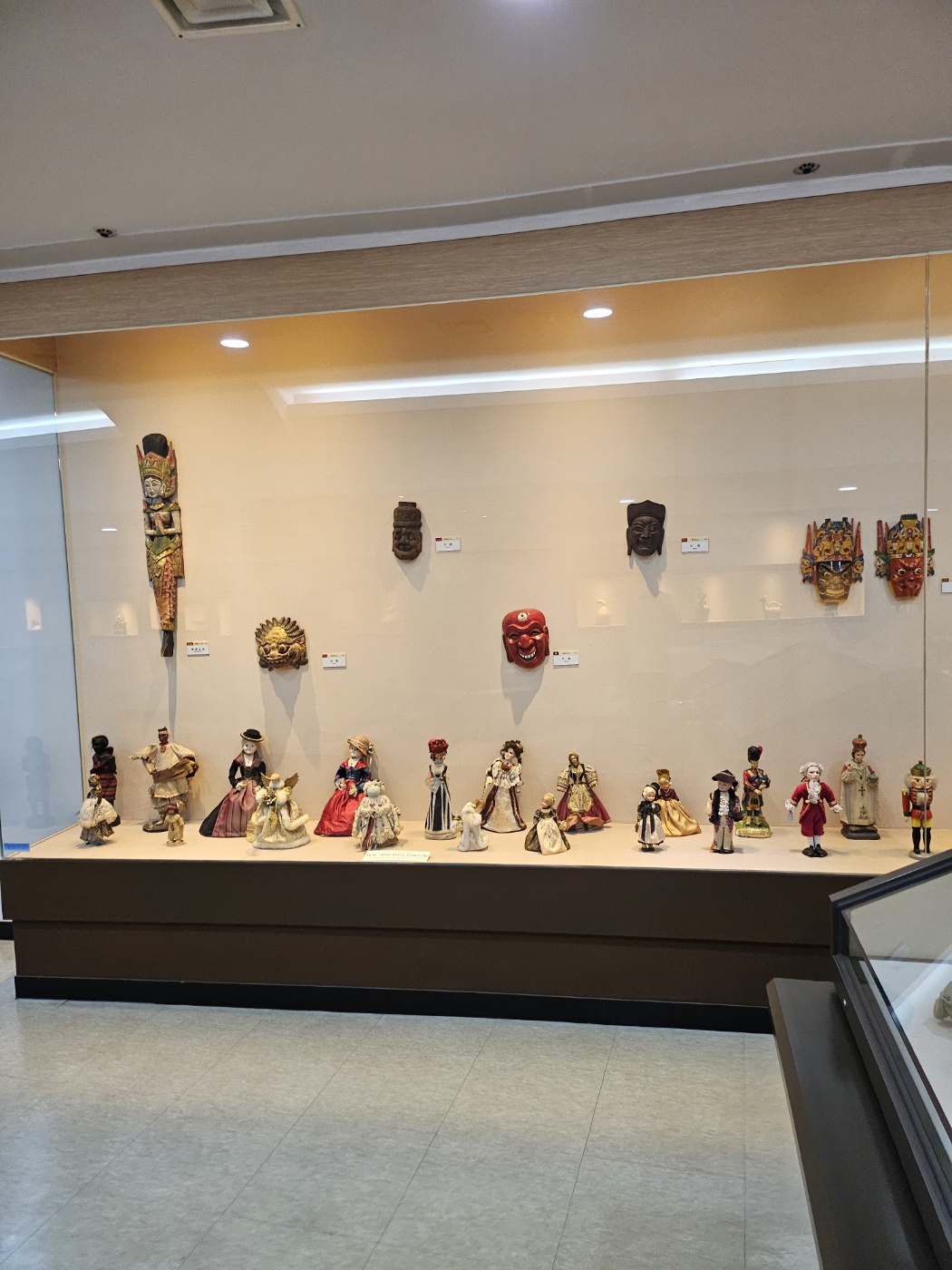 그리고 유럽 미국 아시아 아프리카 등 지역별 인형 구경했는데 익살스러운 표정 짓고 있는 멕시코 해골 가면이랑 화려한 색감 자랑하는 인도 목각인형 인상 깊었어요.