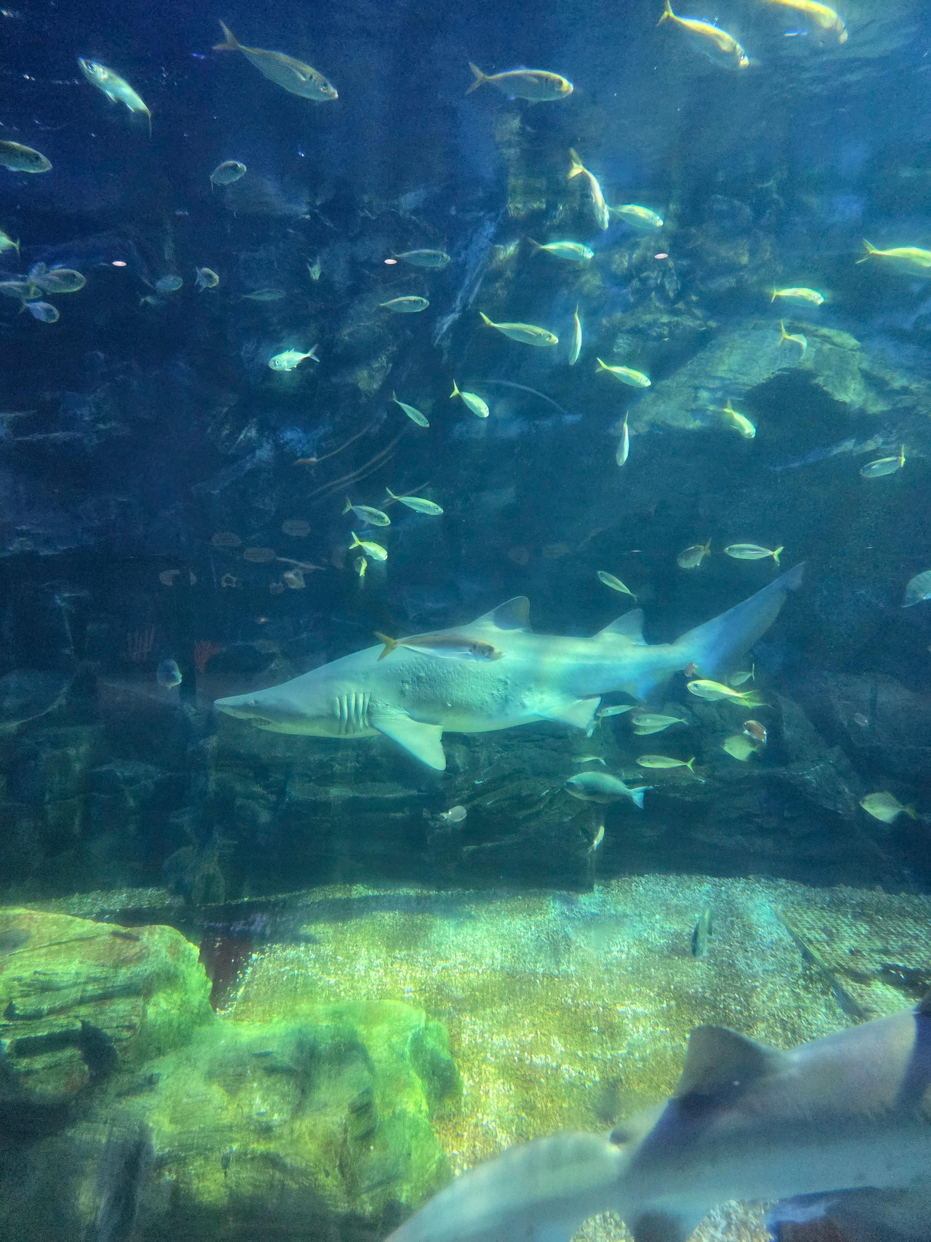 1. 샌드 타이거 샤크 & 메인 수조 가장 인기가 많은 곳이죠! 거대한 샌드 타이거 샤크가 유유히 헤엄치는 모습은 정말 압도적이었어요. 메인 수조 앞은 언제나 포토존이니, 사람이 없을 때 후다닥 찍으셔야 해요.