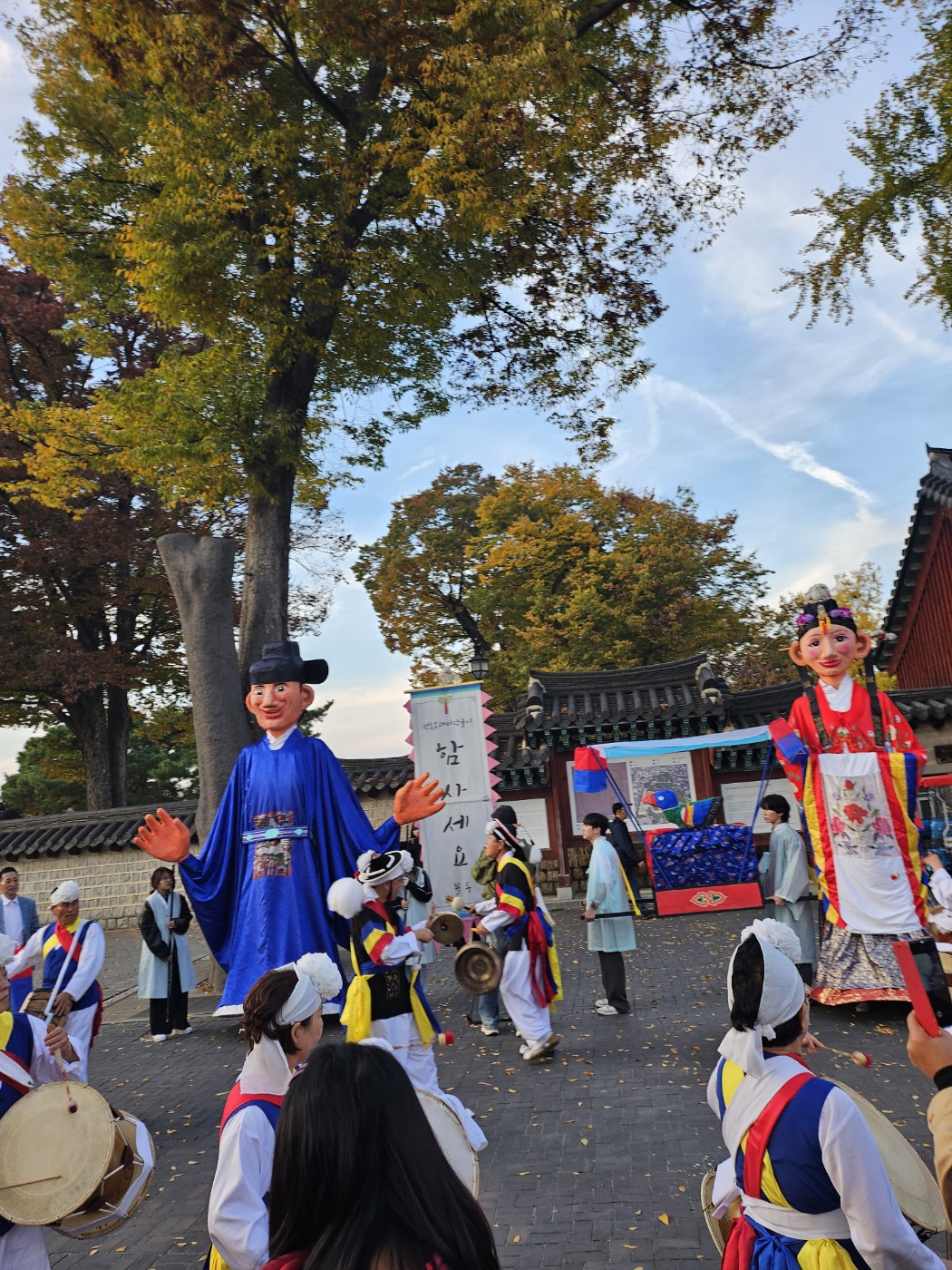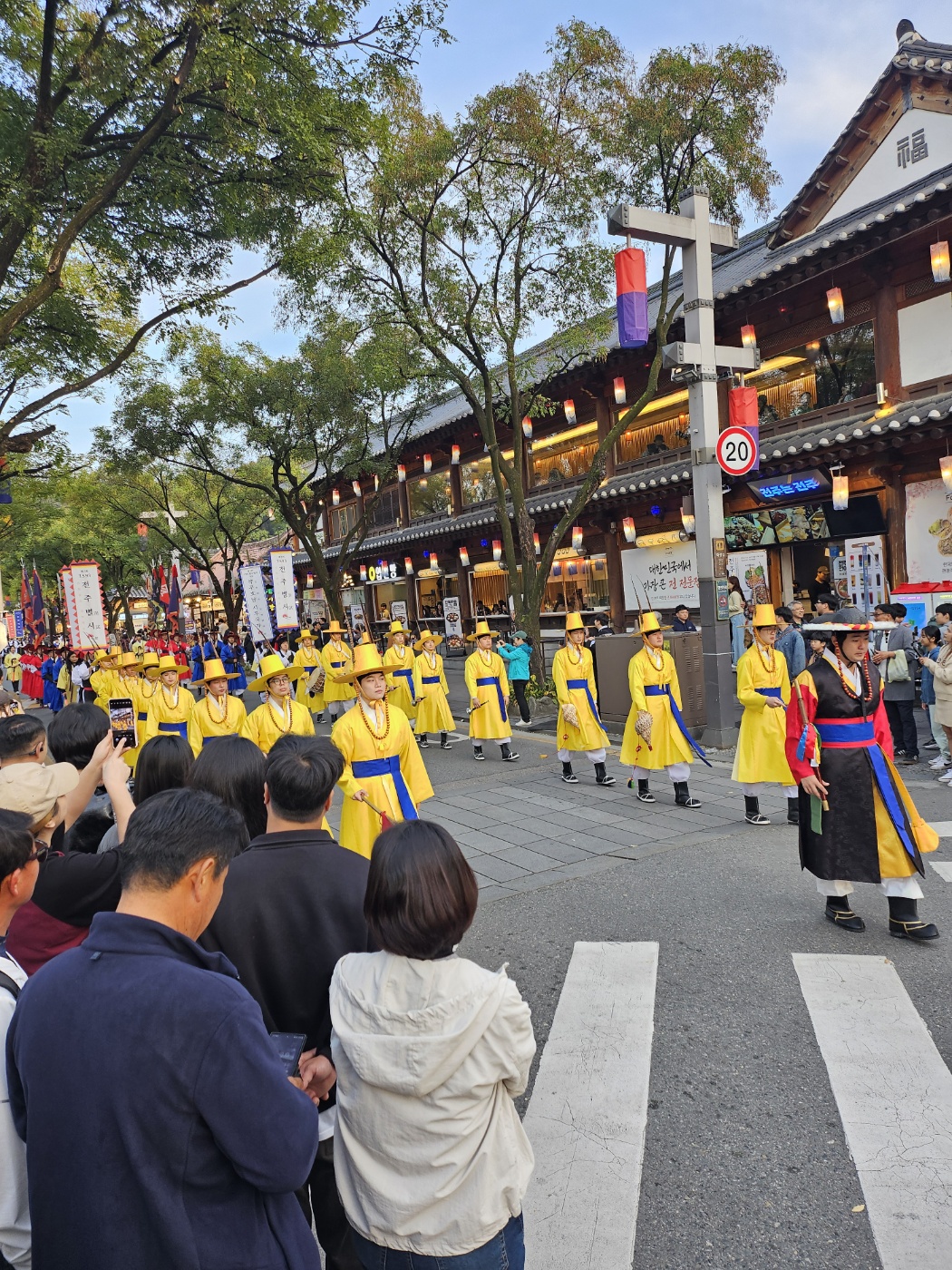 정해진 시간이 되면 풍물놀이 공연을 하는데 저희가 갔을 때는 과거시험 체험 중이라서 과거에 참가해서 급제한 사람들과 함께 거리 퍼레이드를 진행하더라고요.
