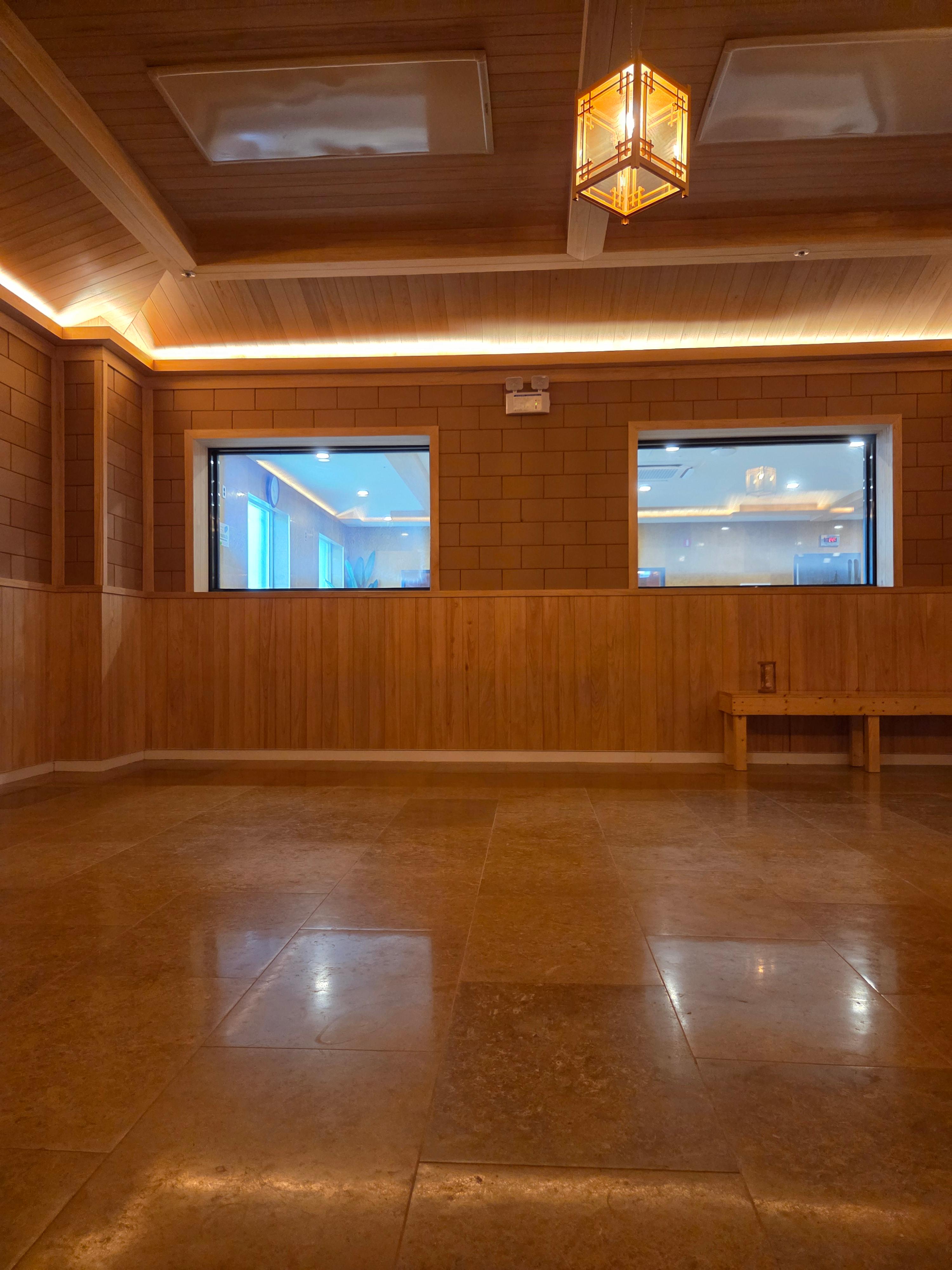 * 🌲 편백나무방: 은은한 편백향이 머리를 맑게 해주는 공간입니다. 너무 뜨겁지 않은 온도로, 통창 너머의 풍경을 보며 여유롭게 휴식을 취하기에 제격이었습니다.