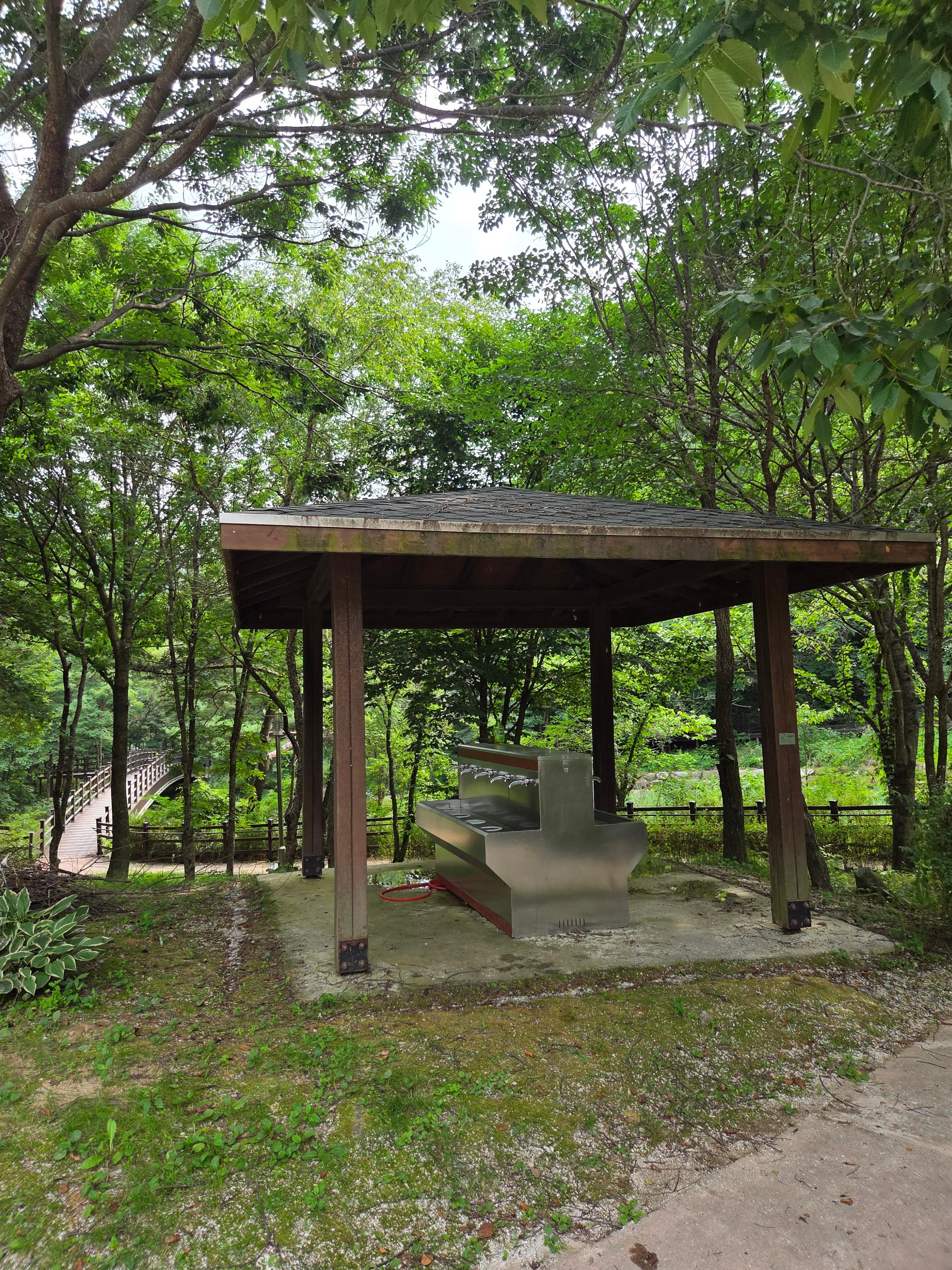 휴양림 안에 위치한 '숲속 카페'는 예상외의 즐거움이었습니다. 간단한 음료와 간식은 물론, 컵라면이나 주류, 숯과 같은 캠핑에 필요한 물품도 판매하는 매점 역할을 톡톡히 합니다. 또한, 백숙이나 녹두전 같은 음식을 주문해 야외 평상에서 맛볼 수도 있어, 미처 음식을 준비하지 못했더라도 든든하게 배를 채울 수 있습니다.