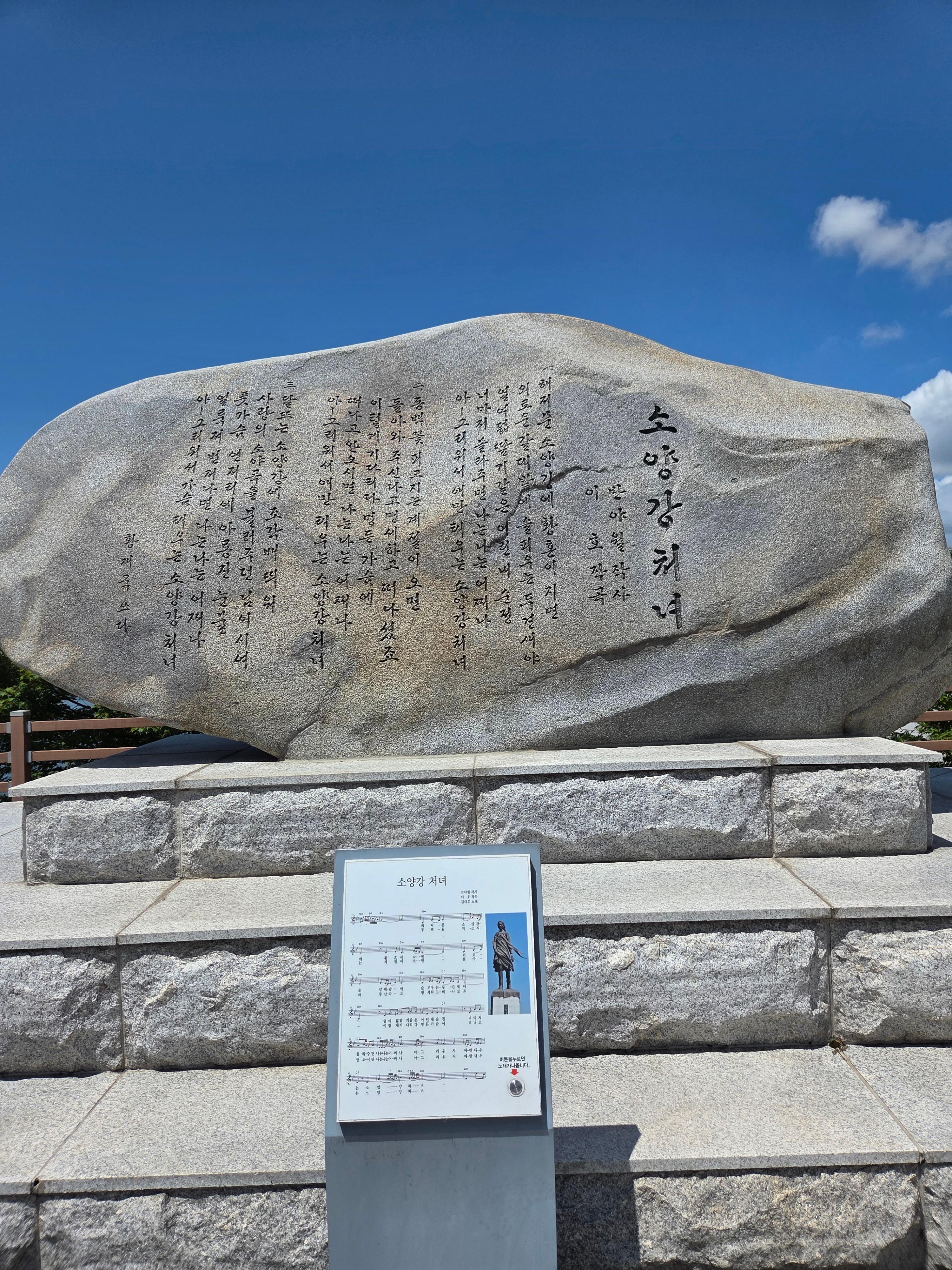 스카이워크 주변에는 함께 둘러볼 만한 명소들이 자리하고 있습니다. 바로 옆에는 애절한 노랫말로 유명한 '소양강 처녀' 동상이 우아한 자태로 서 있어 기념사진을 남기기에 좋습니다. 또한, 여유롭게 호수를 즐기고 싶다면 오리배를 타보는 것도 추천합니다.