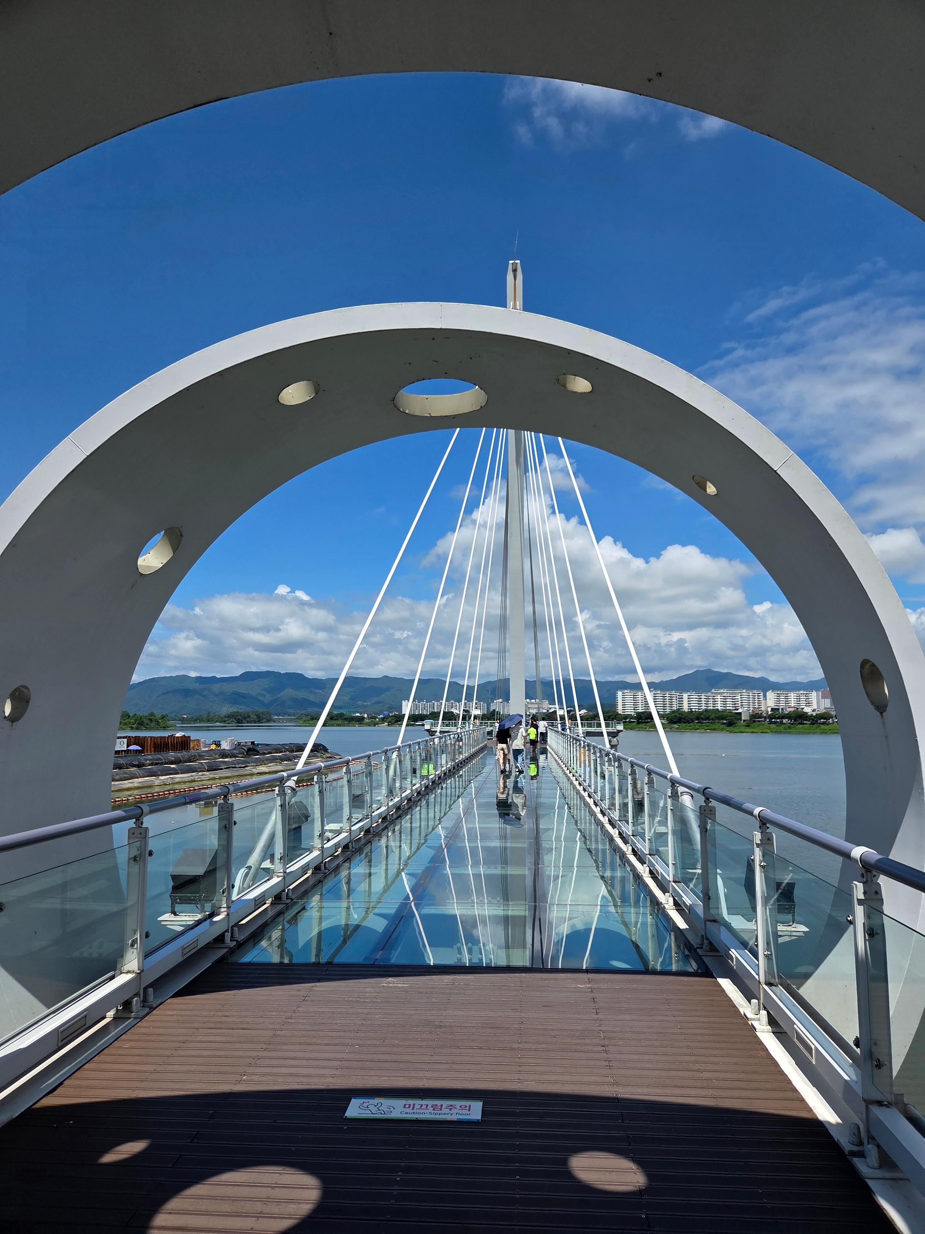스카이워크에 첫발을 내딛는 순간, 발아래로 투명하게 펼쳐지는 소양강의 모습에 짜릿한 스릴을 느끼게 됩니다. 총 길이 174m 중 156m에 달하는 유리 구간은 마치 물 위를 걷는 듯한 신비로운 기분을 선사하며, 무서움을 느끼는 방문객들도 난간을 잡고 천천히 걸으며 이내 아름다운 풍경에 빠져들게 됩니다.
